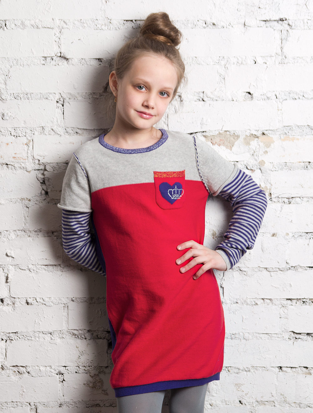 Описание: Вязаное платье, декорированное деталями с люрексом и стразами.