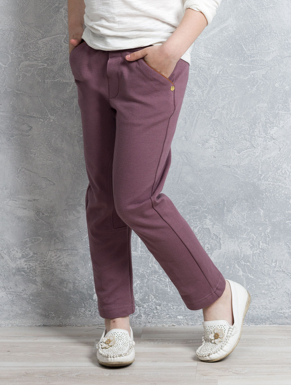 Описание: Брюки из плотного трикотажа с деталями из искусственной кожи.