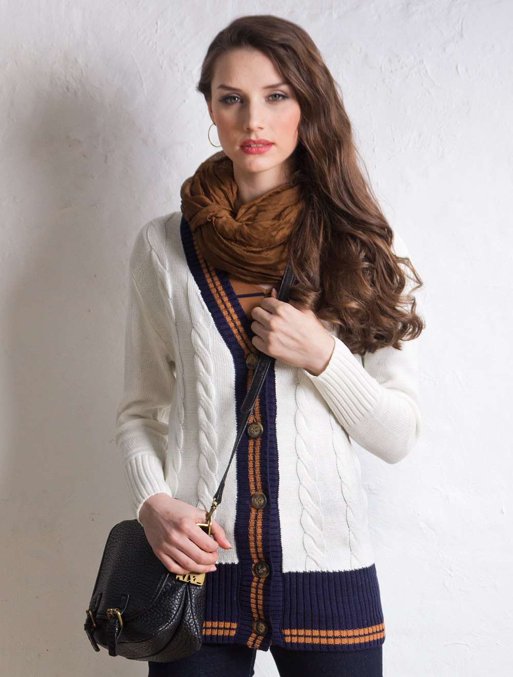 Описание: Крупная фактурная вязка, спереди украшена косами. Полуприлегающий силуэт в стиле 80-х. - более свободный в верхней части, спущенная пройма и широкий рукав на узком длинном манжете. Крупные пуговицы "под натуральный орех". Низ на широкой резинке.
