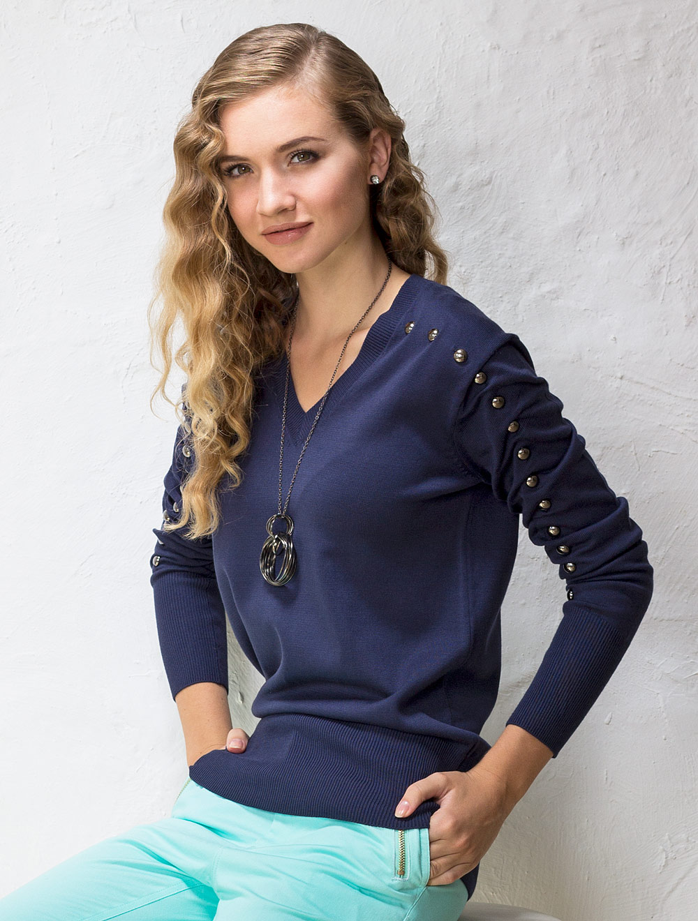 Описание: Рукава по всей длине задрапированы, драпировка фиксируется при помощи крупных бусин металлического цвета.