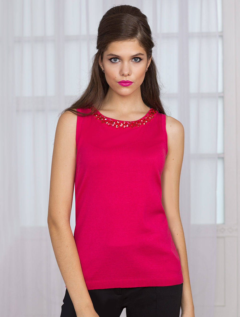 Описание: Тонкая эластичная вязка. Горловина украшена крупными пришивными камнями в тон изделия.