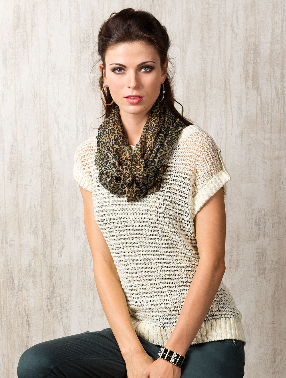 Описание: Вязка "кольчуга" - изделие прозрачное для создания многослойных образов. Рекомендуем вместе с золотистым топом 743-130