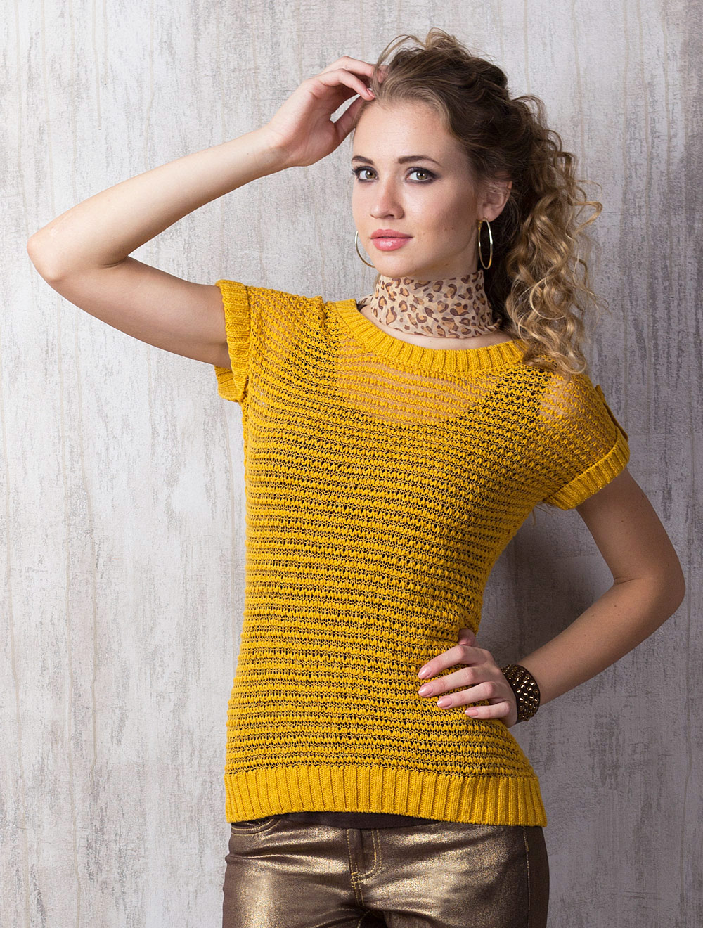 Описание: Вязка "кольчуга" - изделие прозрачное для создания многослойных образов. Рекомендуем вместе с золотистым топом 743-130