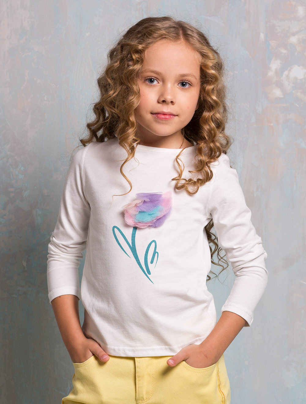 Описание: Футболка из трикотажного полотна, декорированная объемным цветком.