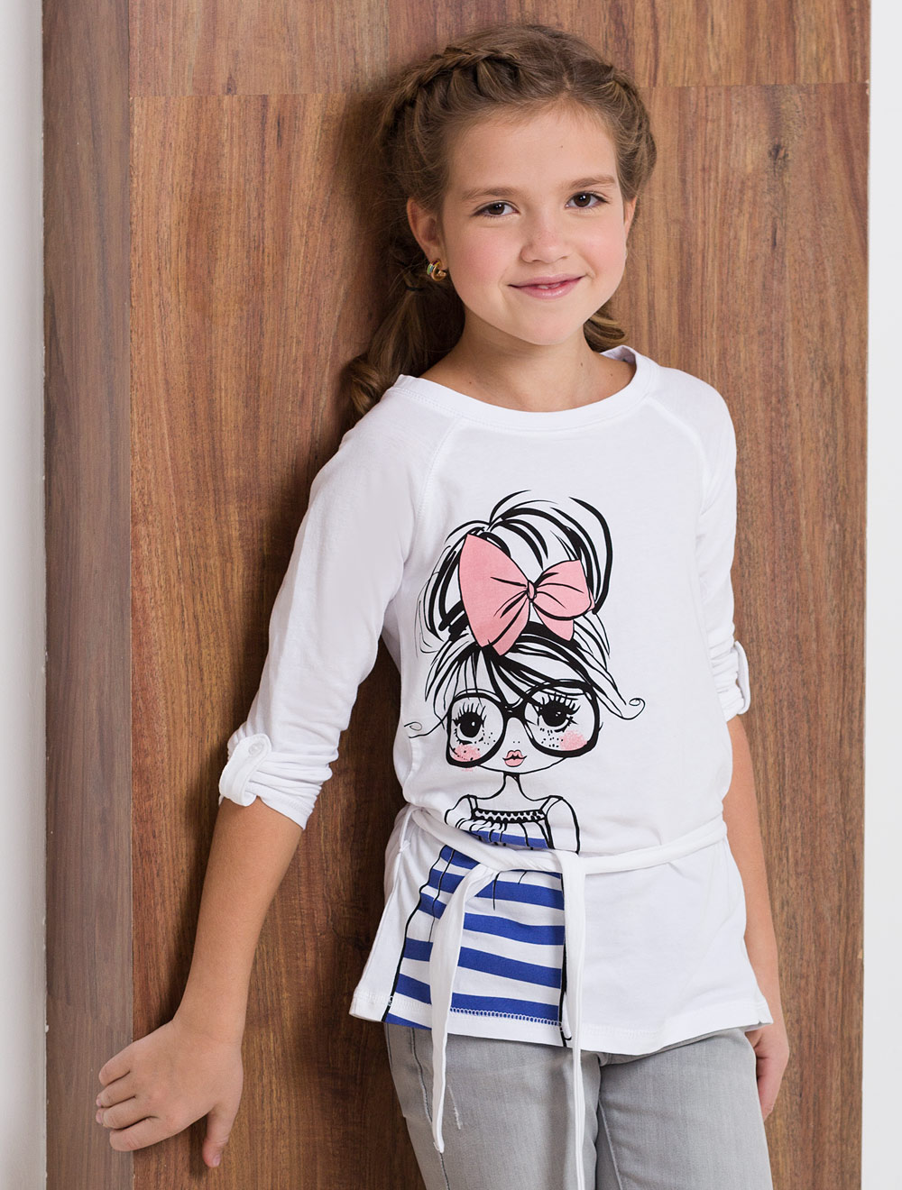 Описание: Удлиненная футболка из эластичного трикотажного полотна, декорированная принтом. Рукав покроя реглан. Длина рукава дополнительно регулируется патой и пуговицей.