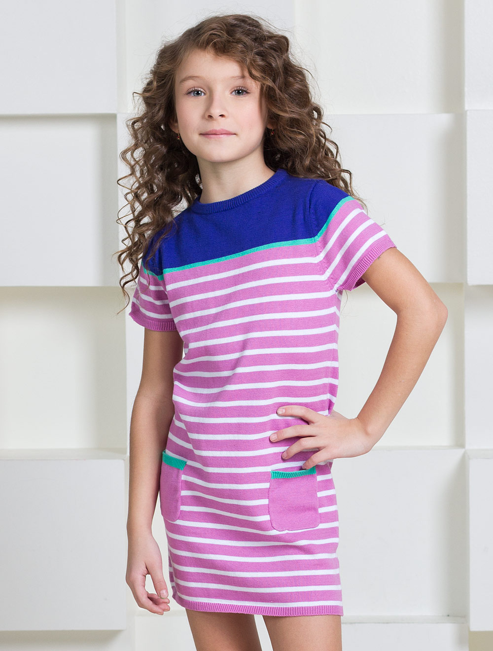 Описание: Вязаное платье из мягкой хлопковой пряжи с боковыми накладными карманами.