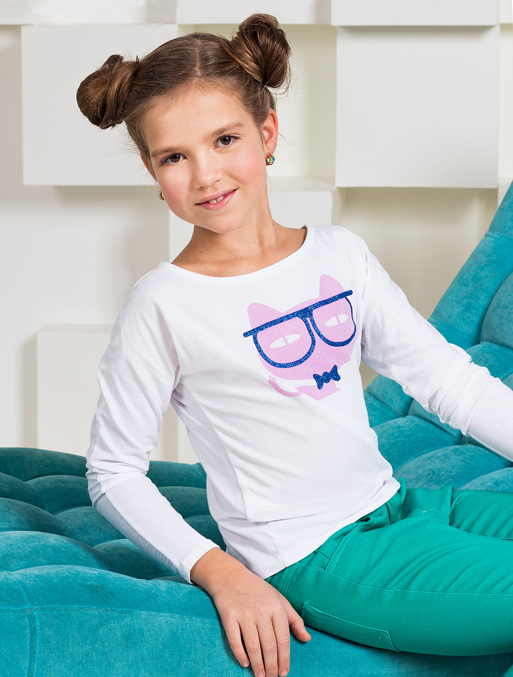 Описание: Футболка с горловиной-лодочкой из мягкого трикотажного полотна, декорированная принтом.