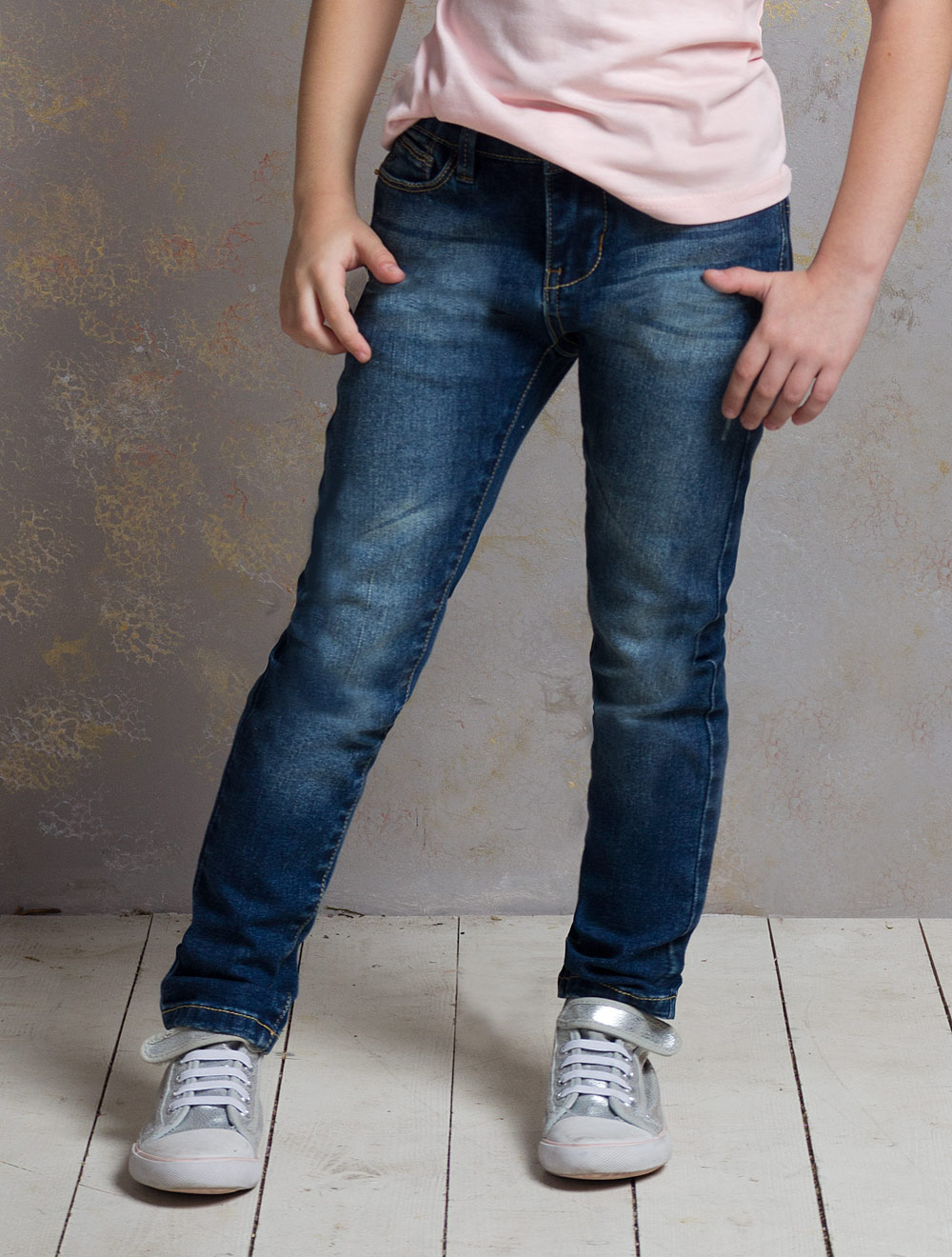 Описание: Классические джинсы с небольшими потертостями. Талия регулируется резинкой.