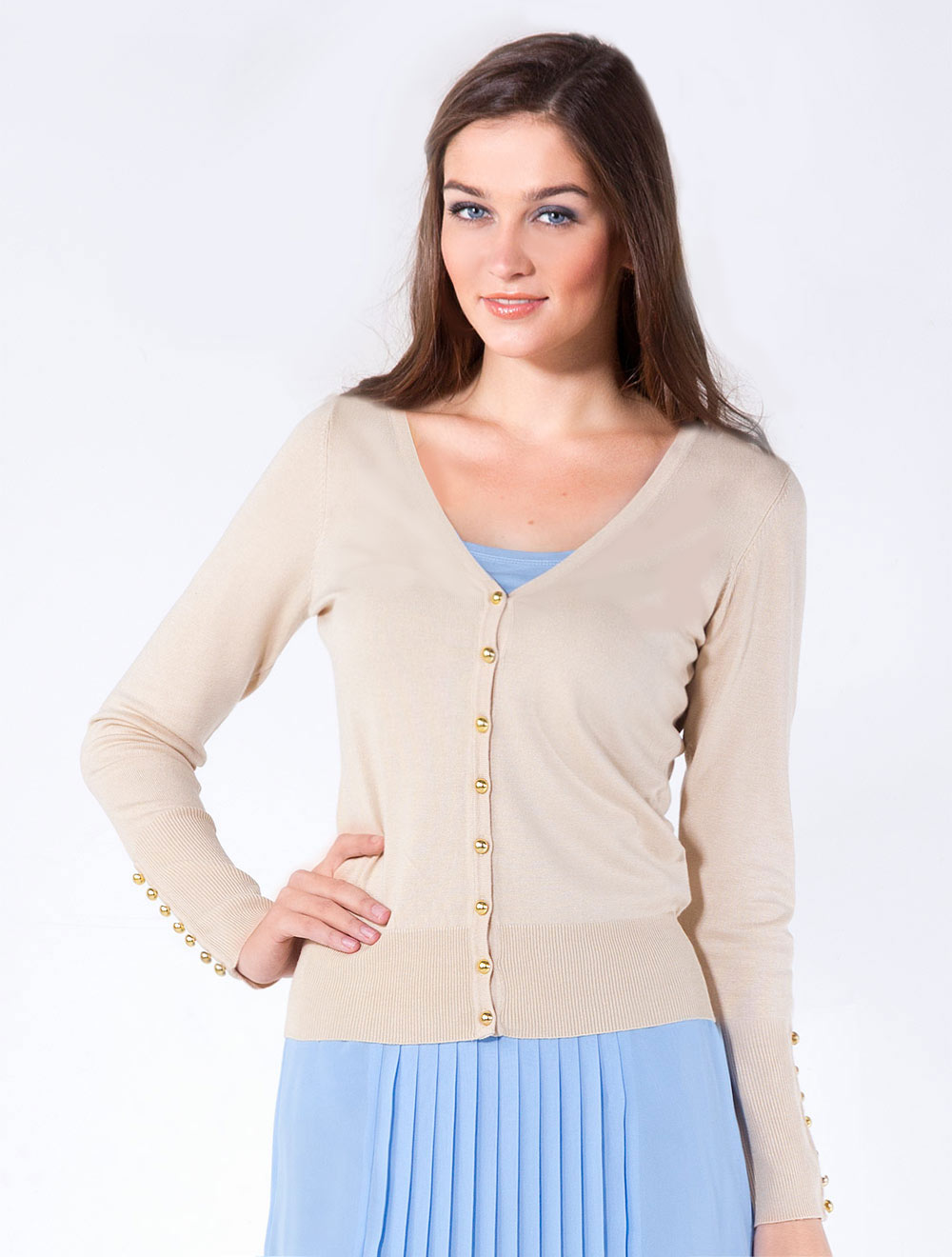 Описание: широкиие манжеты и передняя застежка украшены рядом золотых пуговиц