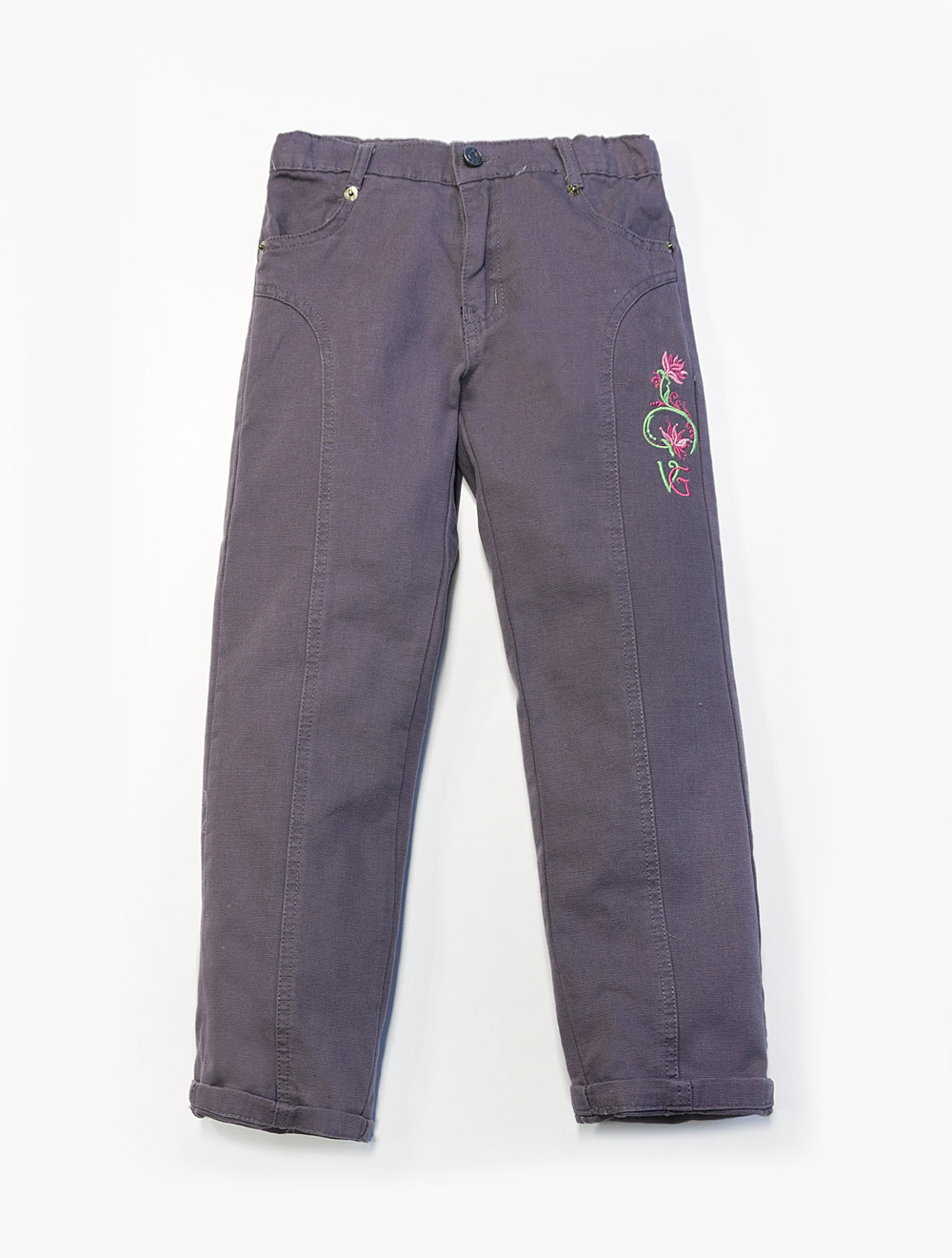 Описание: Брюки из хлопка, декорированные вышивкой.