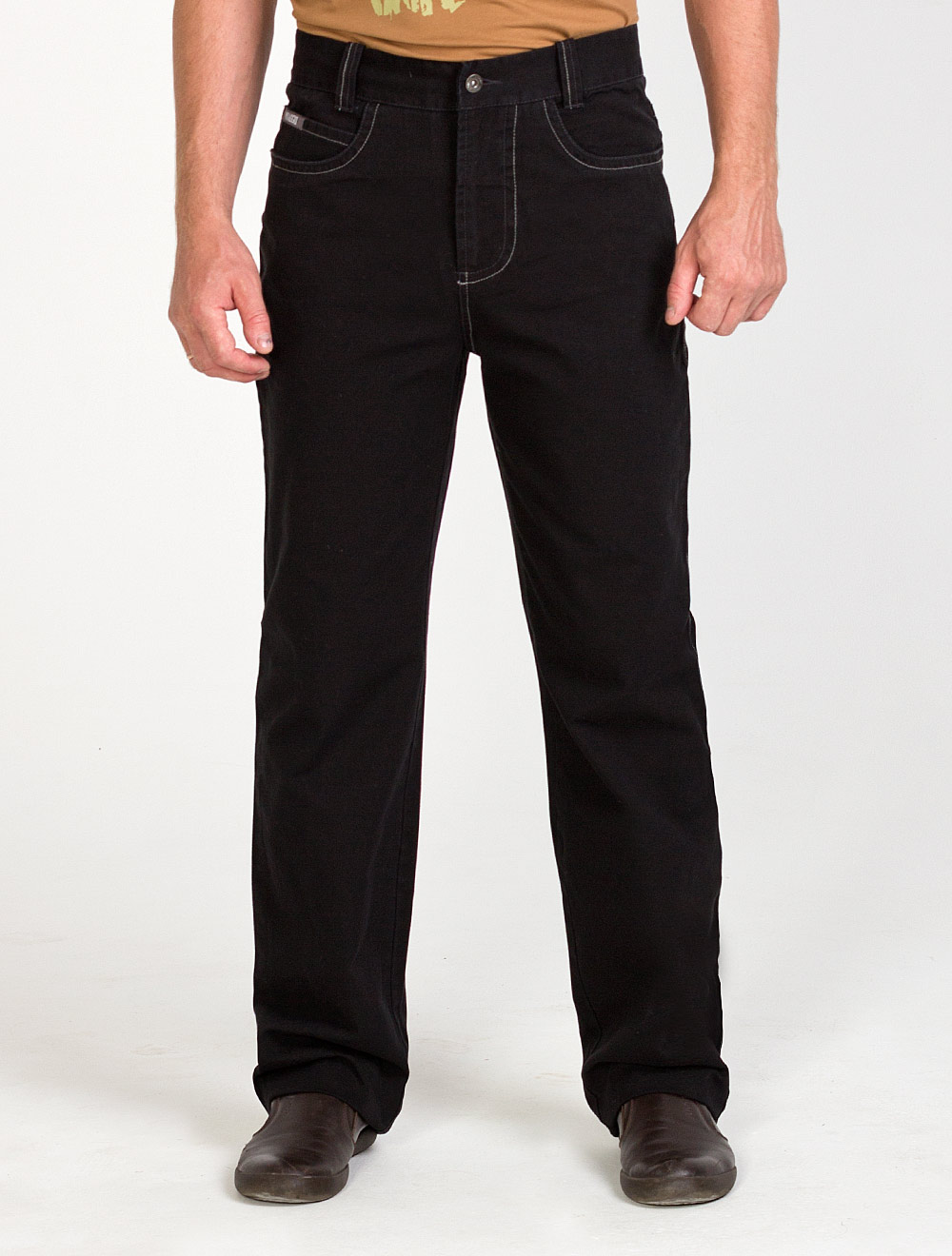 Описание: Брюки из плотного хлопка. Покрой брюк аналогичен джинсовым моделям. Двойные отделочные строчки.