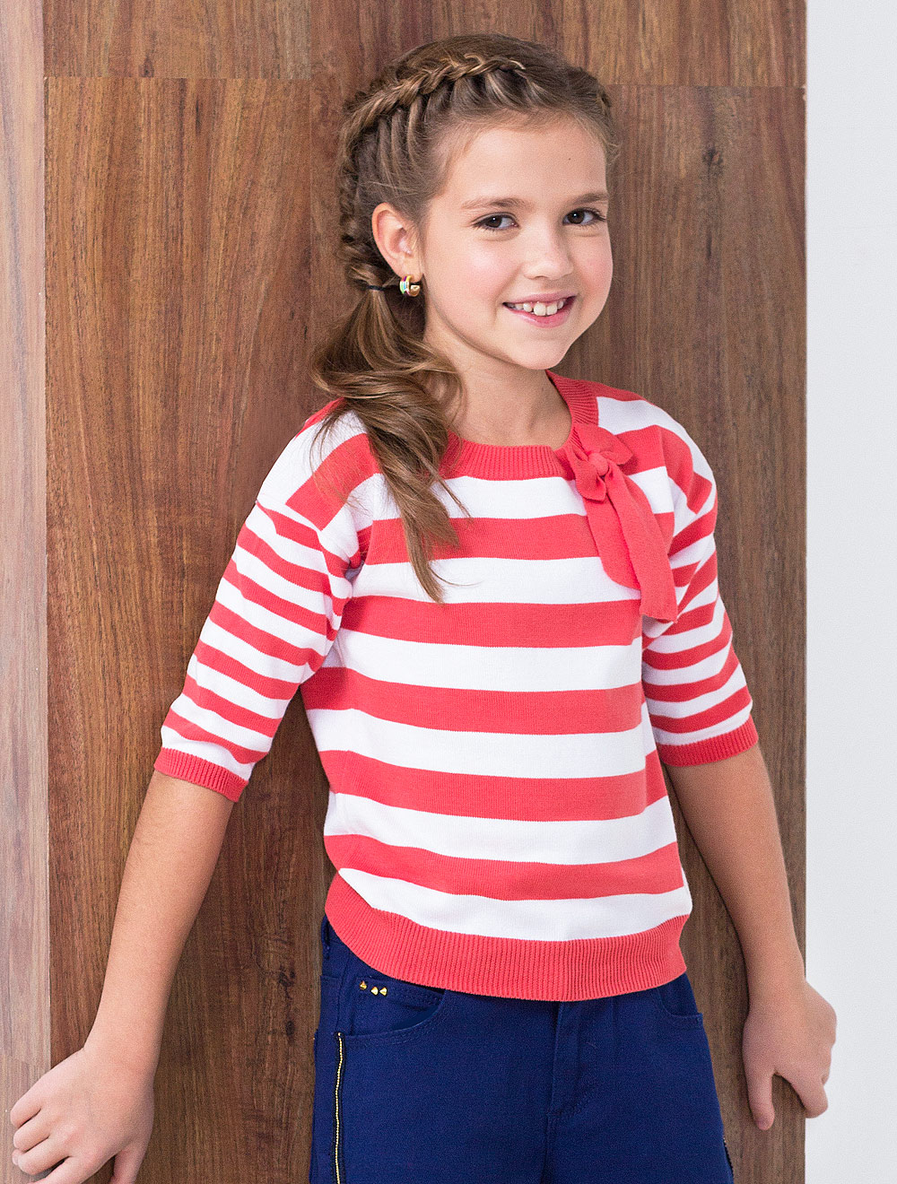 Описание: Джемпер для девочки с удлиненным плечом и горловиной-лодочкой, декорированной бантом.Состав 100% хлопок.