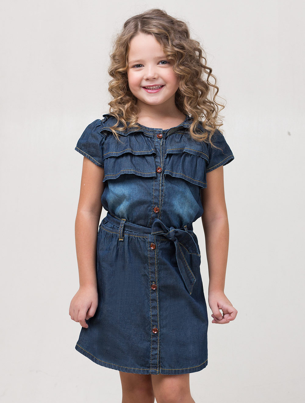 Описание: Джинсовое платье декорировано оборками на груди. На талии с изнанки настрочена резинка для лучшего прилегания. Рукава-фонарики.