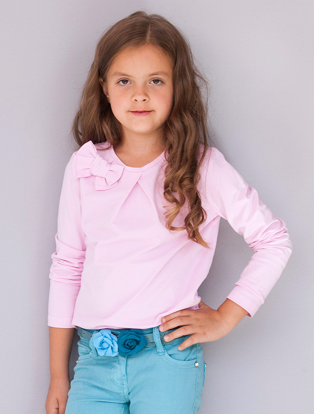 Описание: Футболка из эластичного хлопкового трикотажа, декорированная бантом из основного полотна.