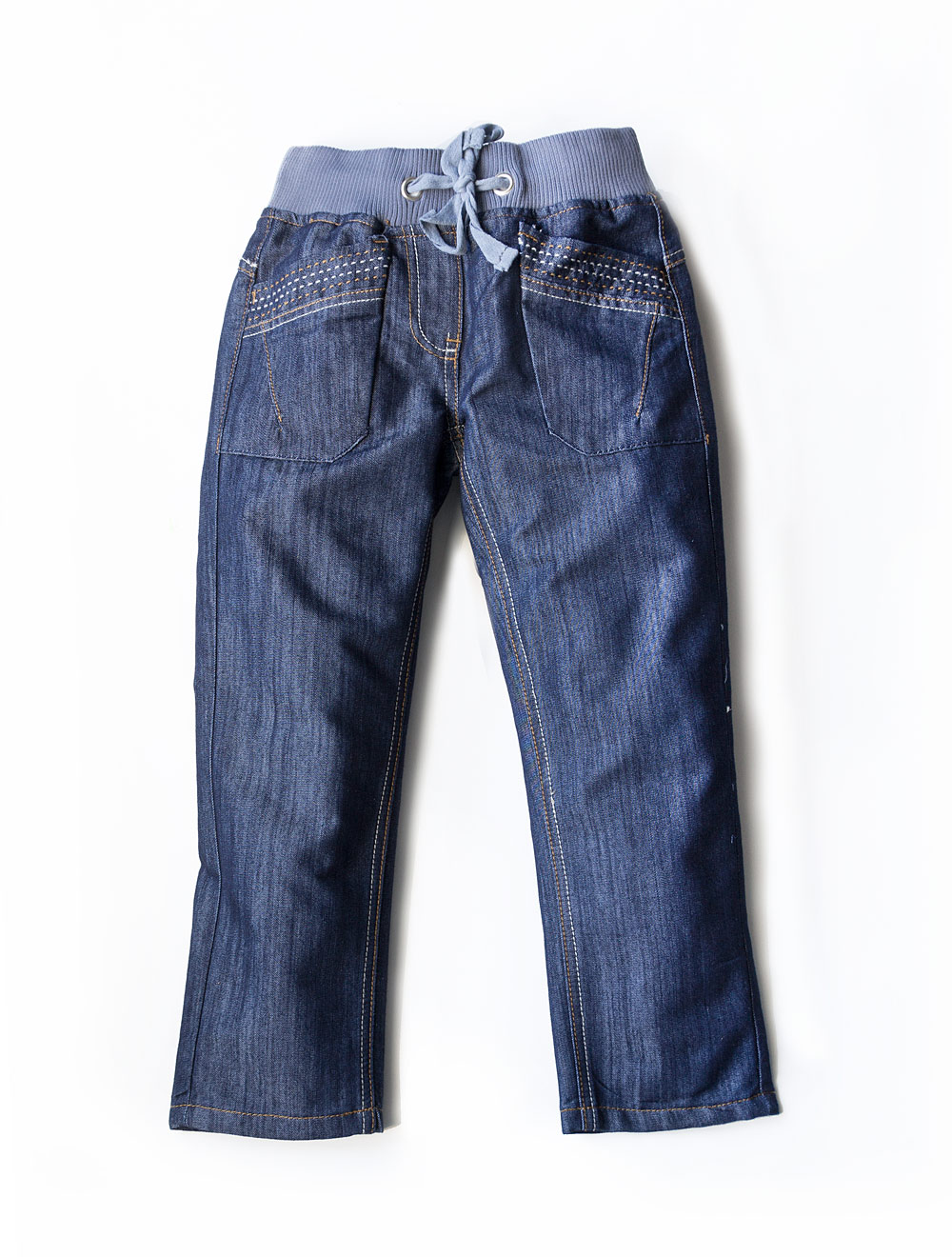 Описание: Джинсы свободного кроя, декорированные контрастной отделочной строчкой
