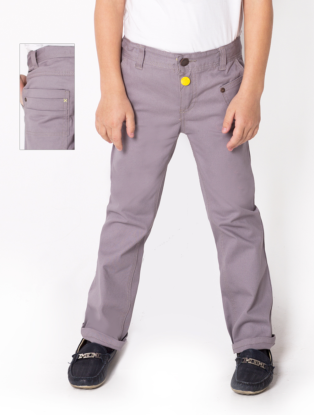 Описание: Хлопок средней плотности, толстая отделочная строчка. Гульфик украшен яркой пуговицей.