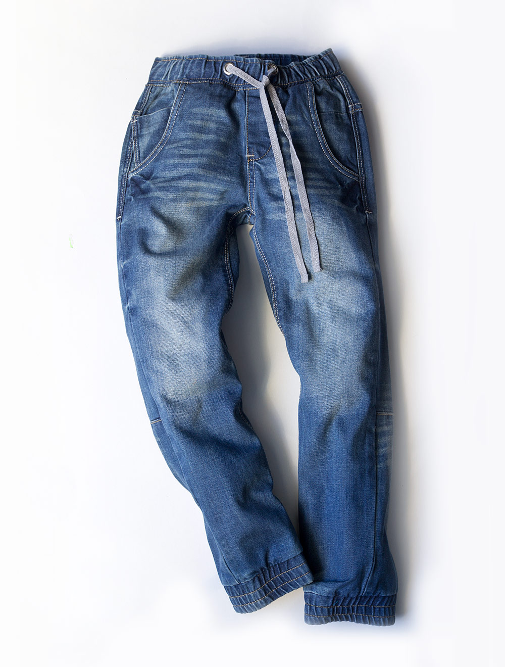 Описание: Джинсы свободного кроя, низ собран на резинку.