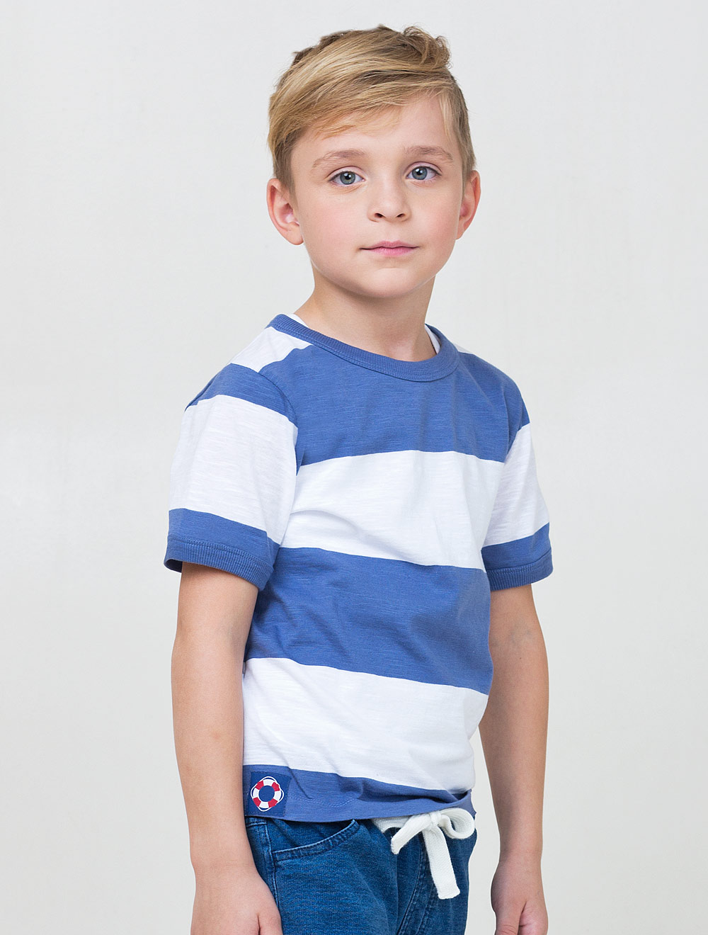 Описание: Футболка для мальчика из фактурного хлопка с нашивкой по правому боку.