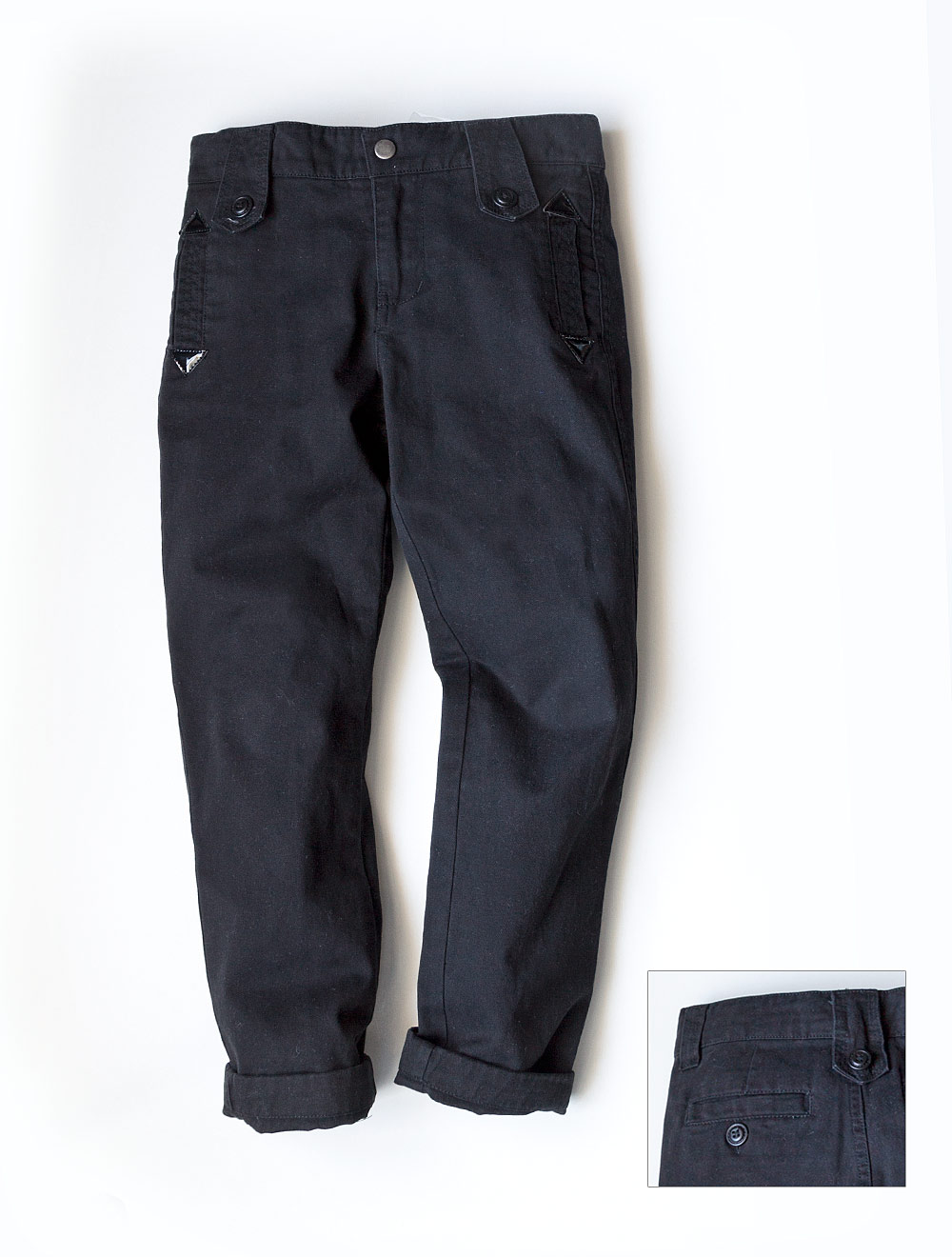 Описание: Брюки из твила средней плотности. Толстые декоративные строчки, стирка. Карманы декорированы деталями из искусственной кожи.