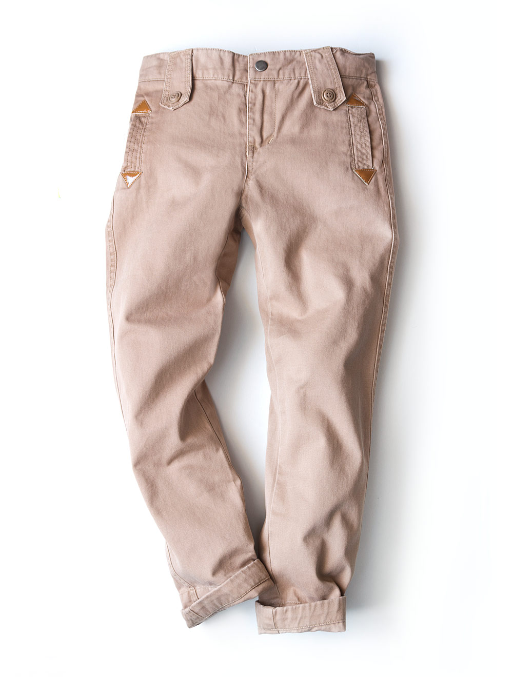 Описание: Брюки из твила средней плотности. Толстые декоративные строчки, стирка. Карманы декорированы деталями из искусственной кожи.