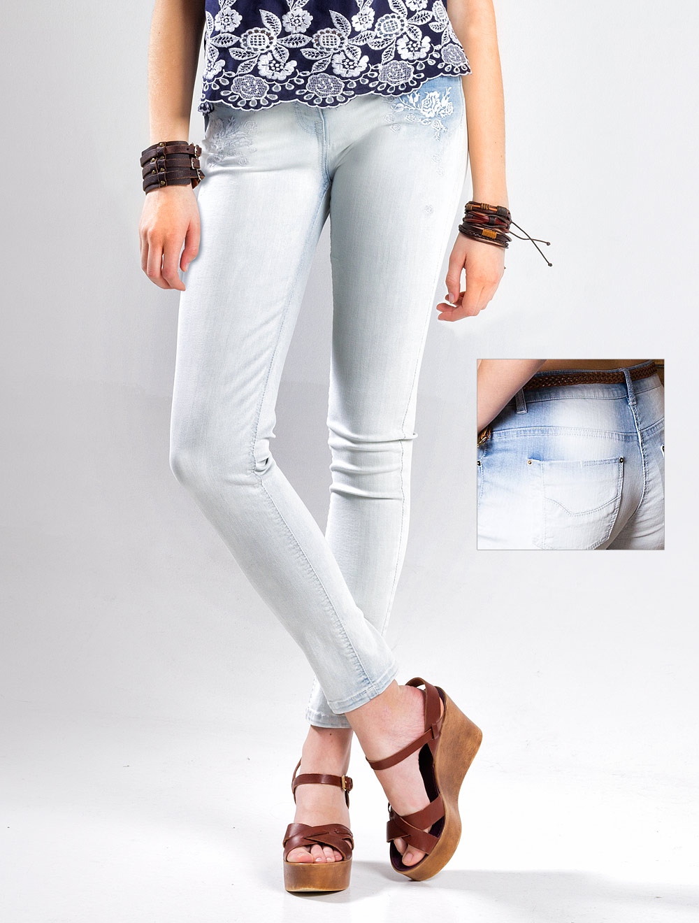 Описание: Джинсы классической формы с эффектной выбеленной стиркой. Передние карманы украшены фактурной вышивкой.