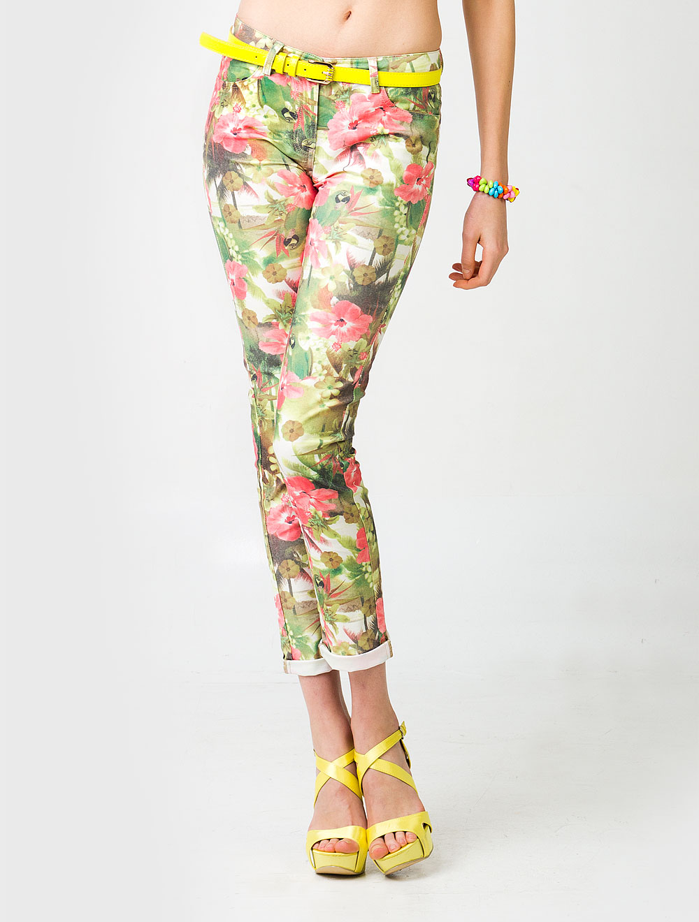 Описание: Выполнены из плотного, очень эластичного материала "джинсовой фактуры" с тропическим принтом.
