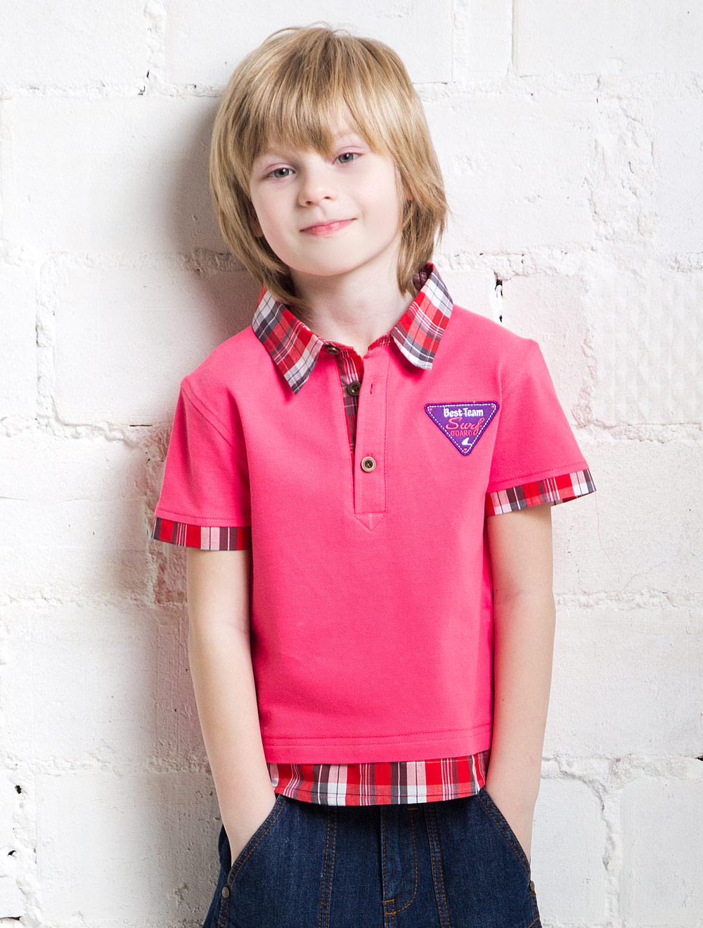 Описание: Поло из полотна "пике" с отделкой из клетчатой ткани.На груди - декоративная нашивка.