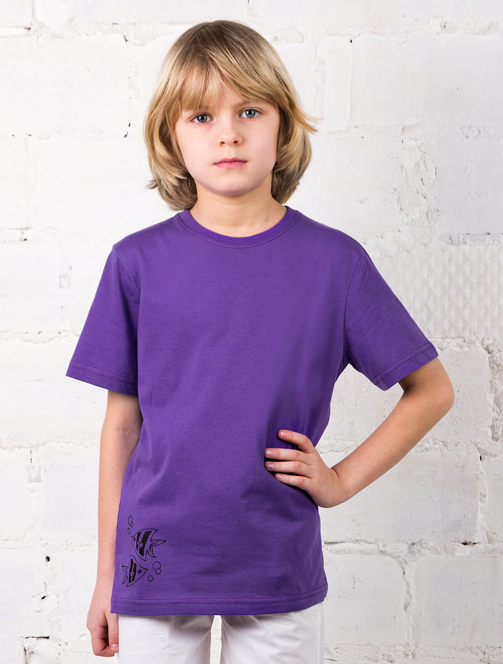 Описание: Базовая футболка из хлопкового трикотажа. В нижнем углу спереди небольшой принт "рыбки".