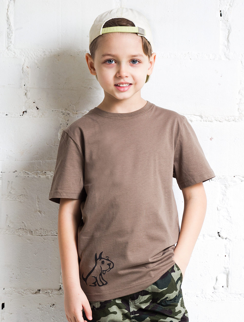 Описание: Базовая футболка из хлопкового трикотажа. В нижнем углу спереди небольшой принт "собачка".