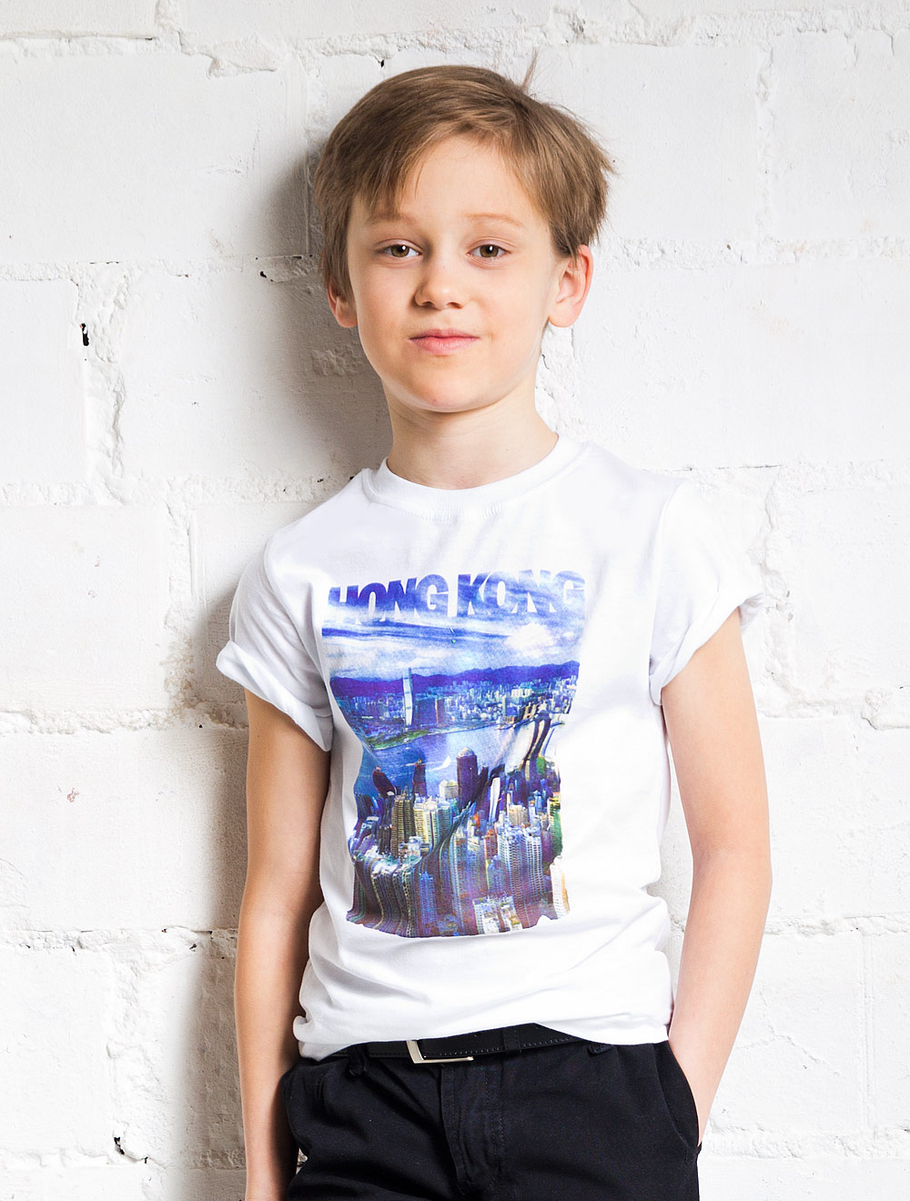 Описание: Футболка из хлопкового трикотажа, декорированная принтом "Гонконг"