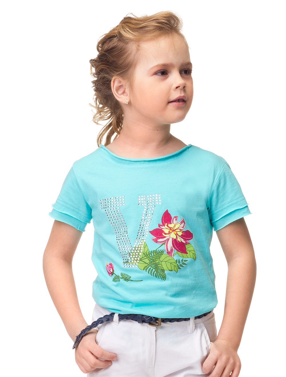 Описание: Футболка из хлопкового трикотажа, декорированная стразами и принтом.