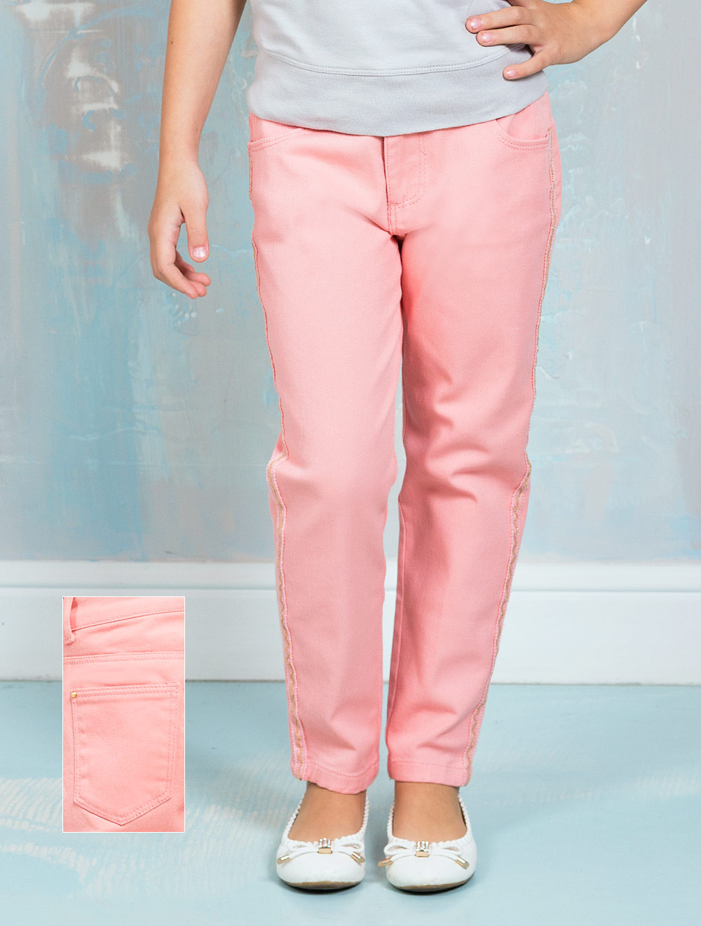 Описание: Брюки свободного кроя из плотной хлопковой ткани. Лампасы выполнены из тесьмы с металлическими деталями.