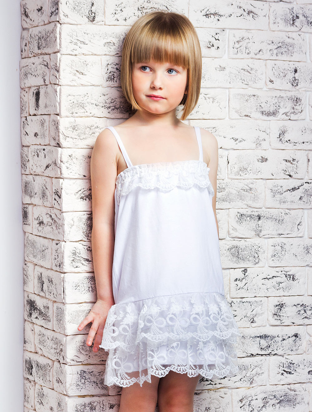 Описание: Сарафан из хлопкового трикотажа с кружевными воланами.