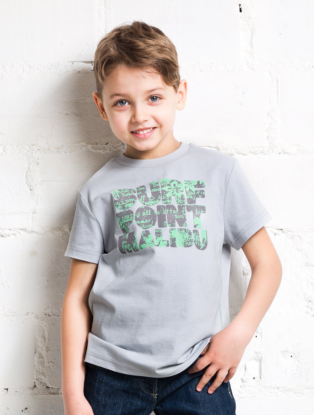Описание: Футболка из хлопкового трикотажа, декорированная принтотм. Боковые швы смещены вперед и отделаны контрастной строчкой.