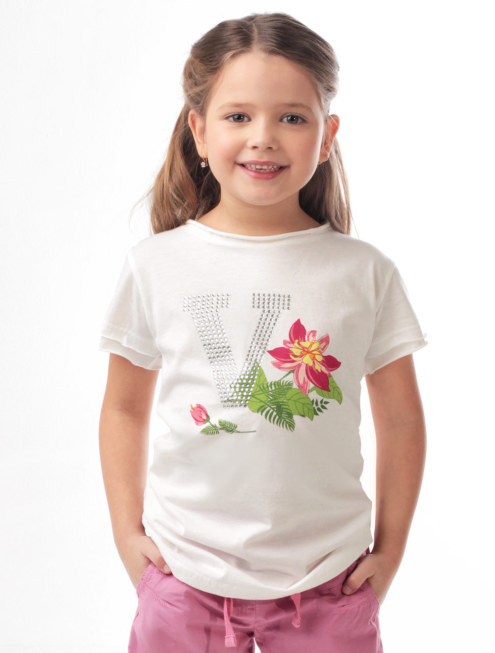 Описание: Футболка из хлопкового трикотажа, декорированная стразами и принтом.