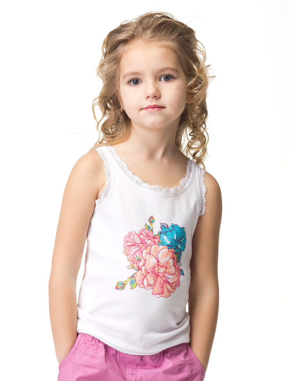 Описание: Топ из хлопкового трикотажа, декорированный эластичным кружевом и принтом.