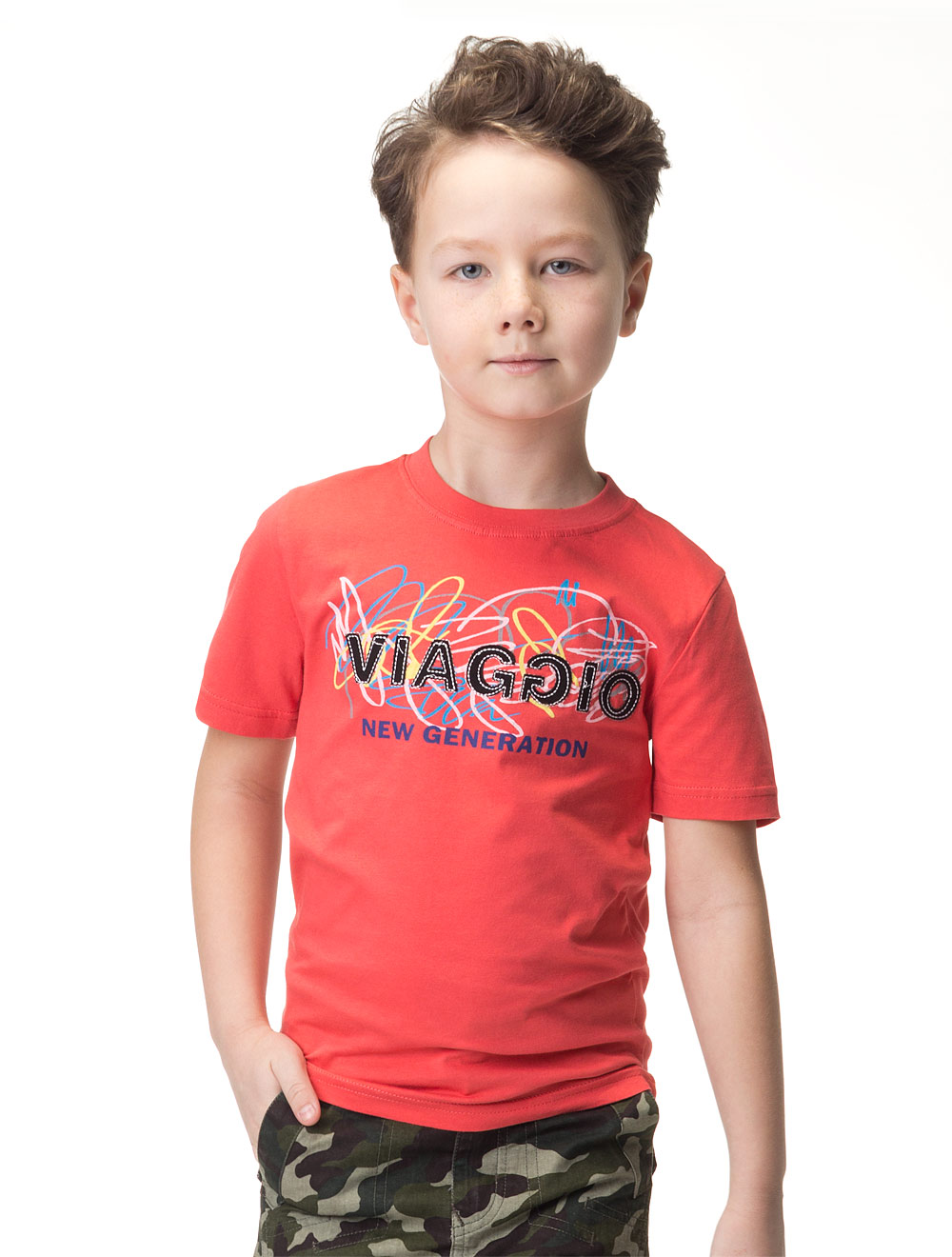 Описание: Фантазийная нашивка Viaggio и цветной принт c надписью new generation.