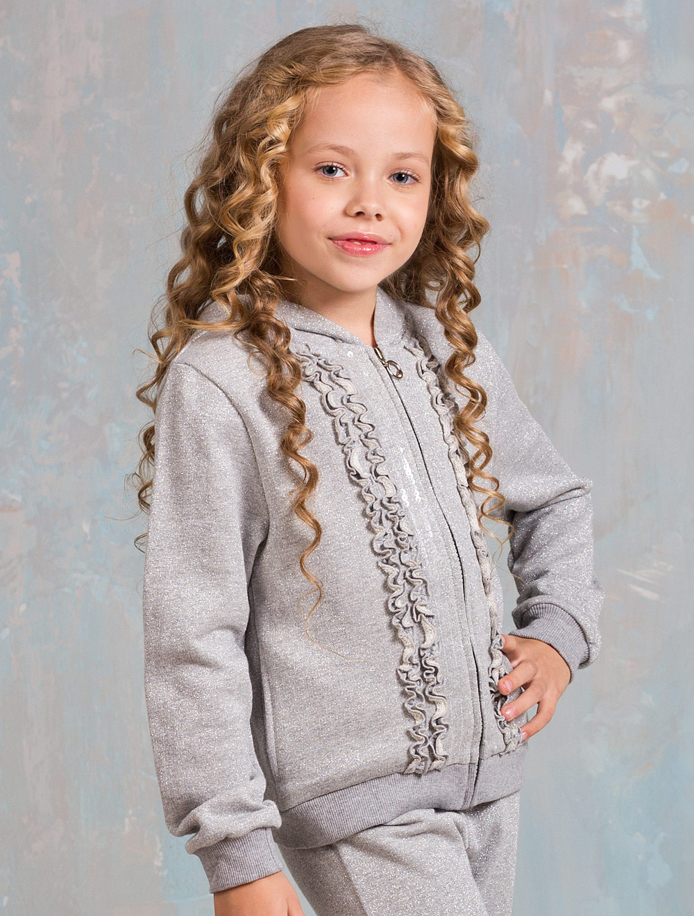 Описание: Жакет из плотного трикотажного полотна с добавлением люрекса. Вышивка прозрачными пайетками вдоль застежки.