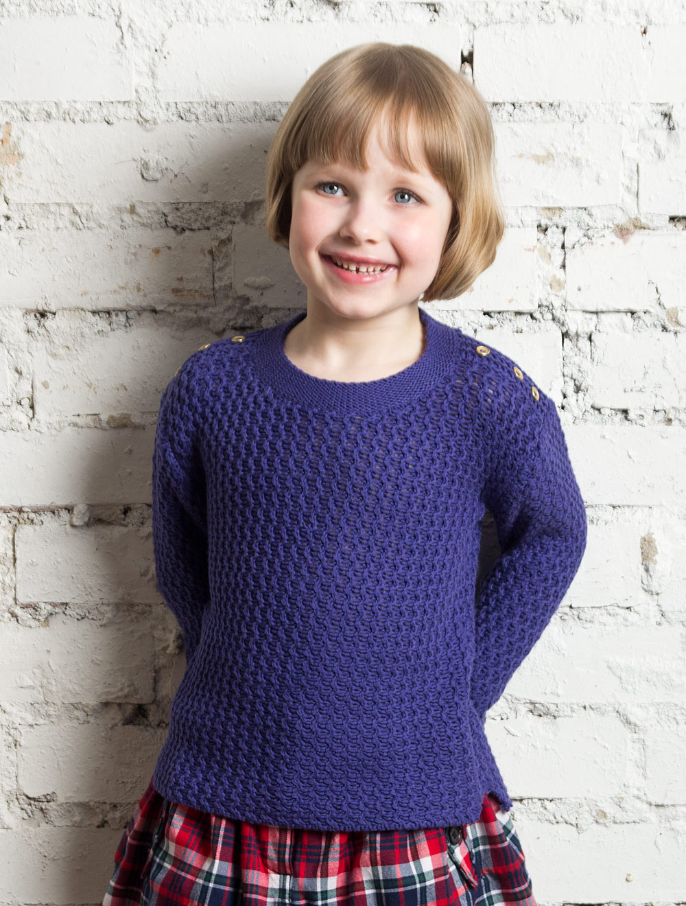 Описание: Джемпер ажурной вязки, на плечах декорированный металлическими пуговицами.