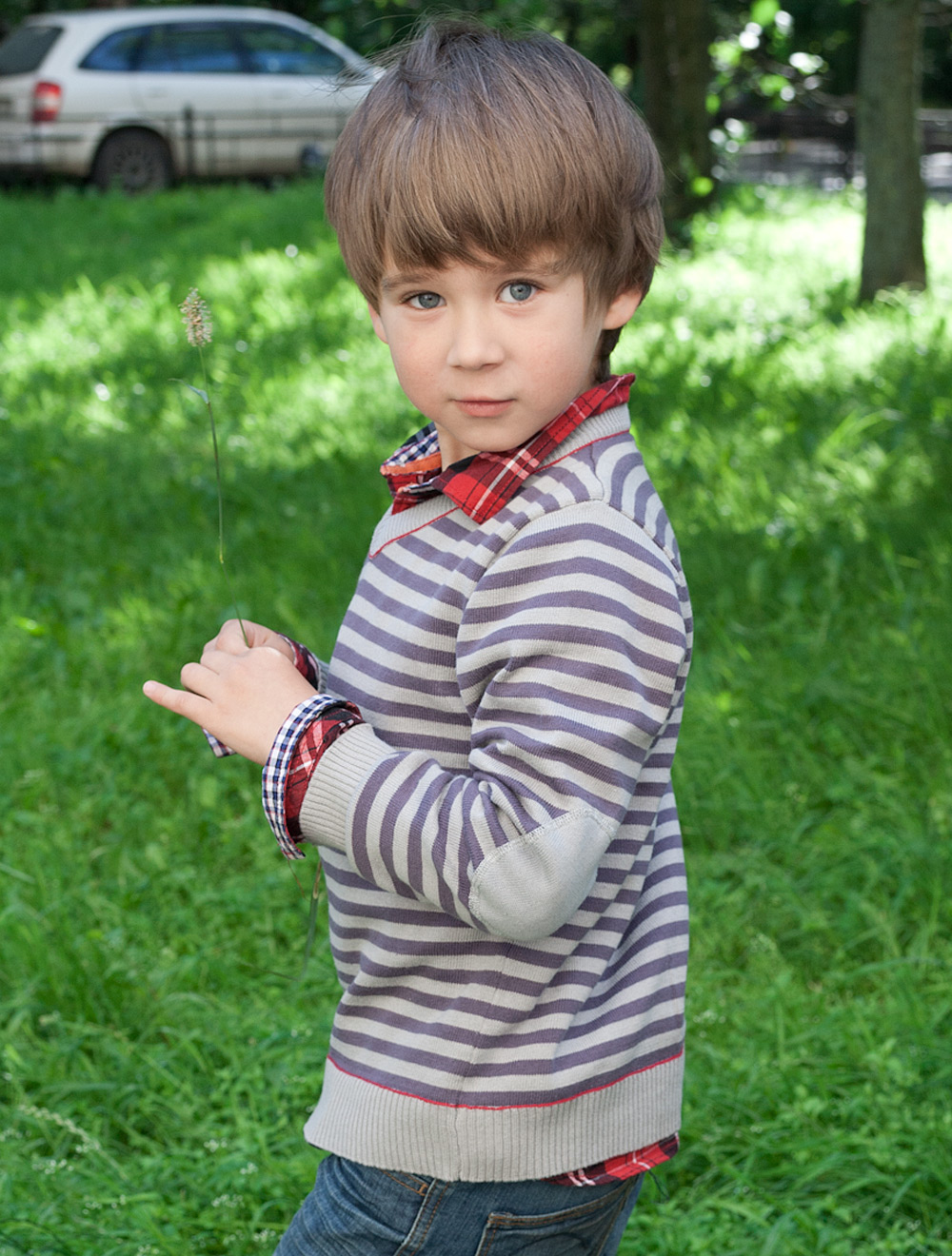 Описание: Джемпер из хлопковой пряжи, декорированный контрастной строчкой.