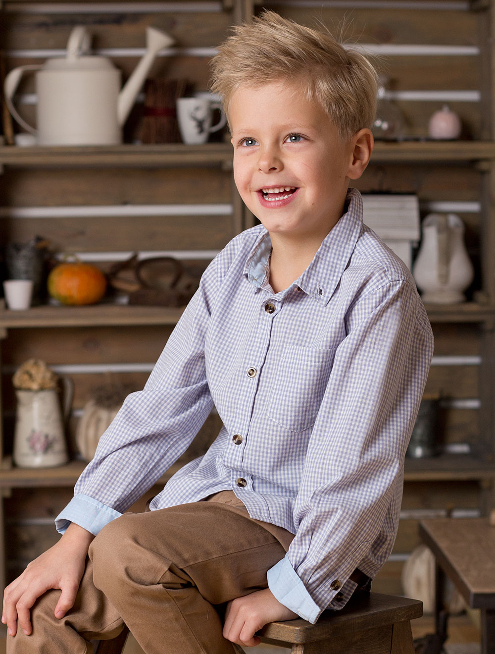 Описание: Рубашка для мальчика с нагрудным накладным карманом. Перед короче спинки за счет фигурной линии низа. Внутренняя манжета, внутренняя стойка выполнены из отделочного материала.