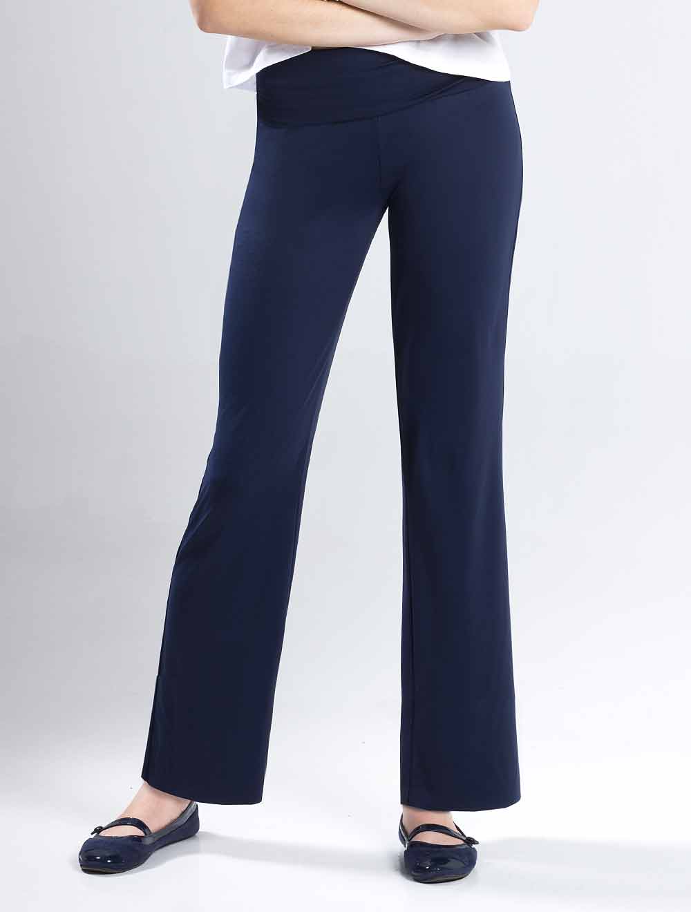 Описание: Брюки из плотного и гладкого синетического трикотажного полотна, качество которого часто используется для спортивной фитнес формы. Пояс широкий двойной - можно носить двумя способами - высоко сидящими или, загнув поплам пояс, - низко сидящими.