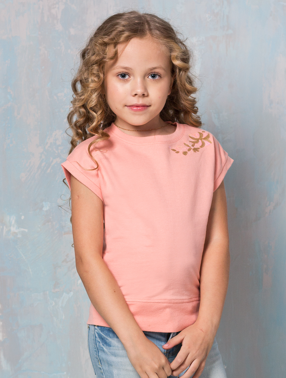 Описание: Джемпер для девочки с цельнокроеными рукавами. Горловина-лодочка. Передняя часть декорирована вышивкой из пайеток.