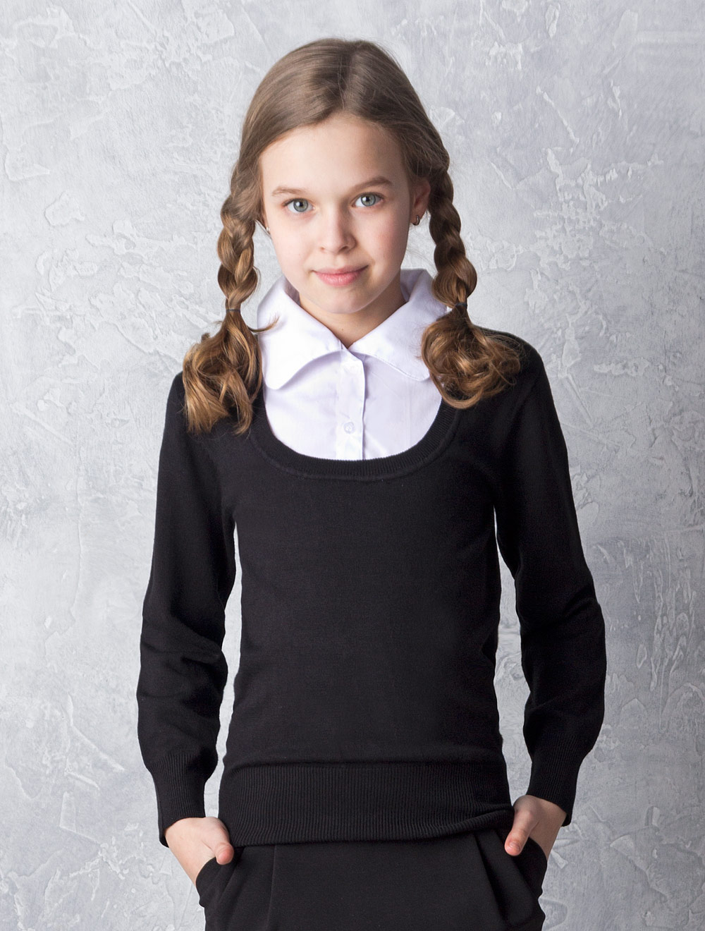 Описание: Джемпер-обманка. Основа - гладкая вязка средней плотности, вставка-воротник выполнена из блузочной ткани белого цвета.
