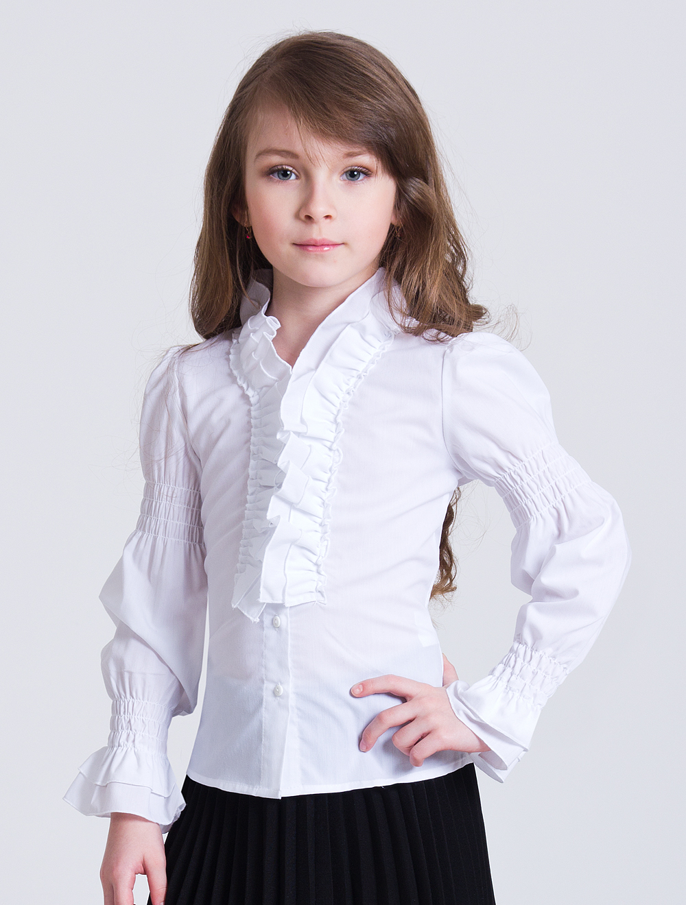 Описание: Изделие из блузочной ткани. Горловина и перед украшены декоративными рюшами, рукава со сборкой на эластичные нити