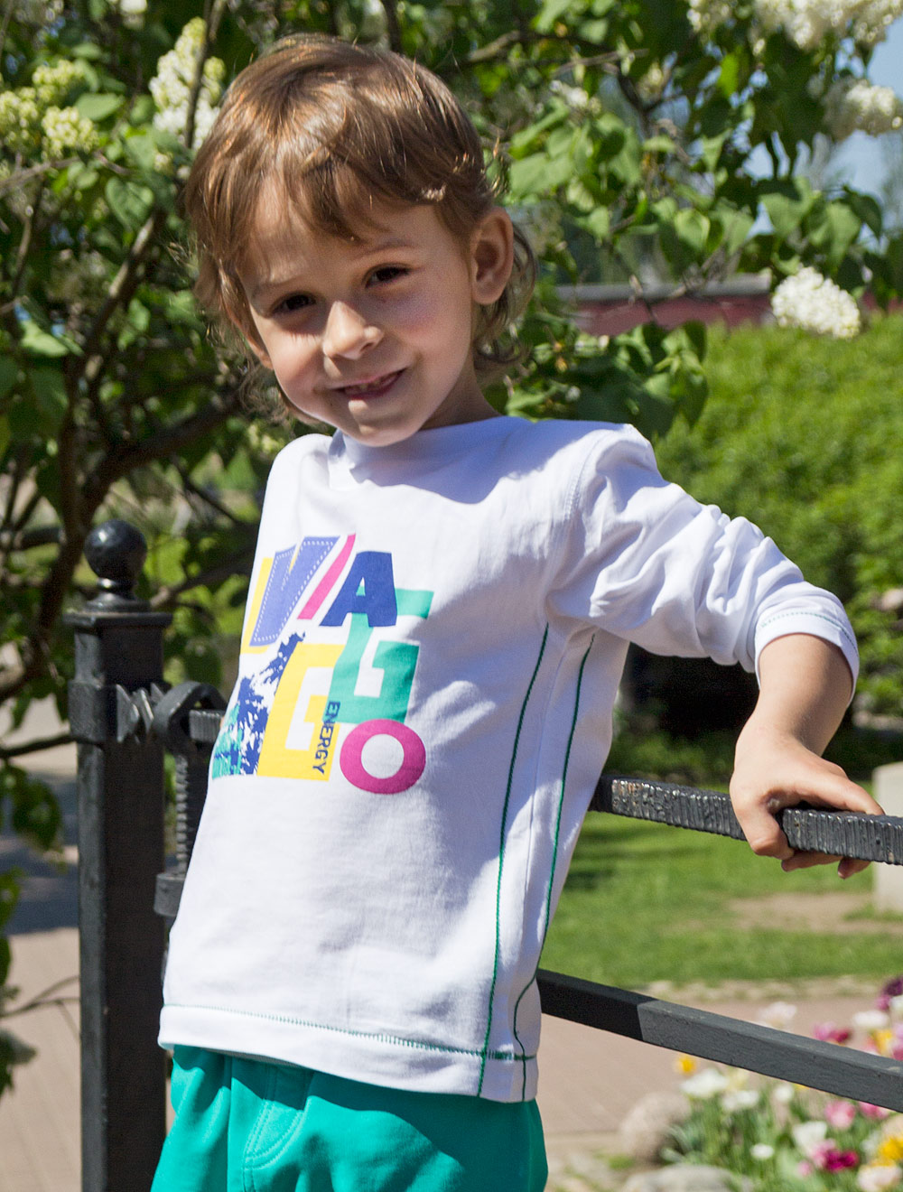 Описание: Футболка из трикотажного полотна, декорированная аппликацией и принтом