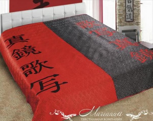 Покрывала всех коллекций изготовлены способом ультрастеп (термостёжка), представляет собой полотно шириной 220 см (ткань с 2х сторон, в середине синтепон 80гр/м2).Ткань искусственный шелк, плотность 107 гр/м2, активное (стойкое) крашение, не линяет.Верх покрывала - набивной рисунок в виде панно, 3D - объемное изображение, низ - однотонная ткань в тон. Края обработаны шелковой бейкой в тон.