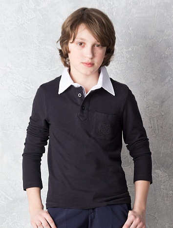 Описание: Основная часть - ткань пике, воротник из рубашечной ткани белого цвета, спереди на груди вышита эмблема.