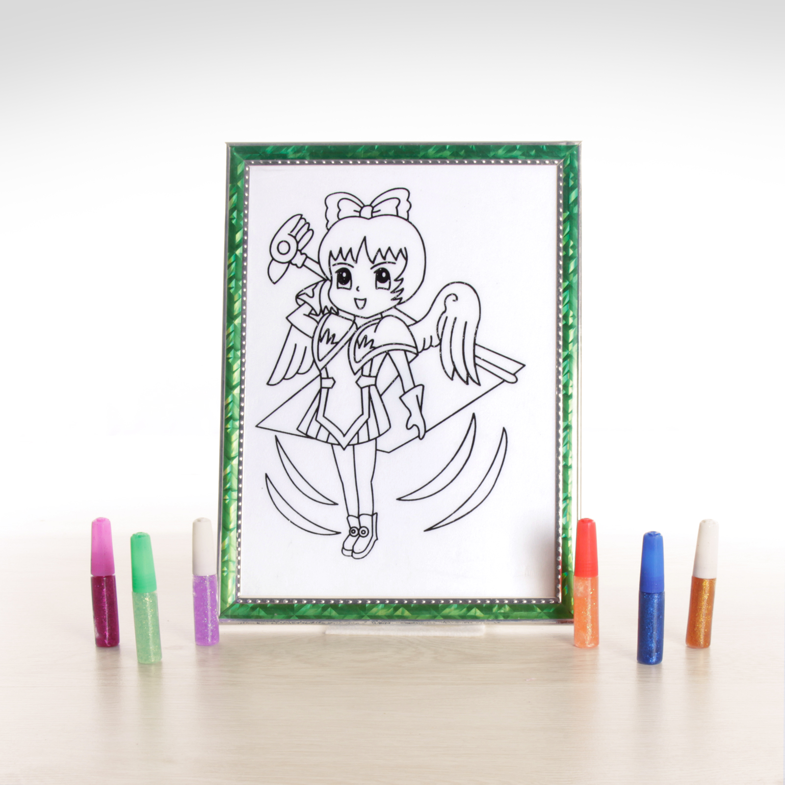 Картинка для рисования глиттерными красками это увлекательное занятие для детей и их родителей. Глиттерные краски придают объем и определенный эффект раскрашиваемой картинке. В комплекте идет картинка и 6 различных цветов для творчества вашего ребенка.