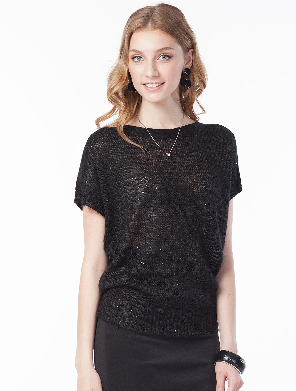 Описание: Джемпер тонкой вязки с черными пайетками